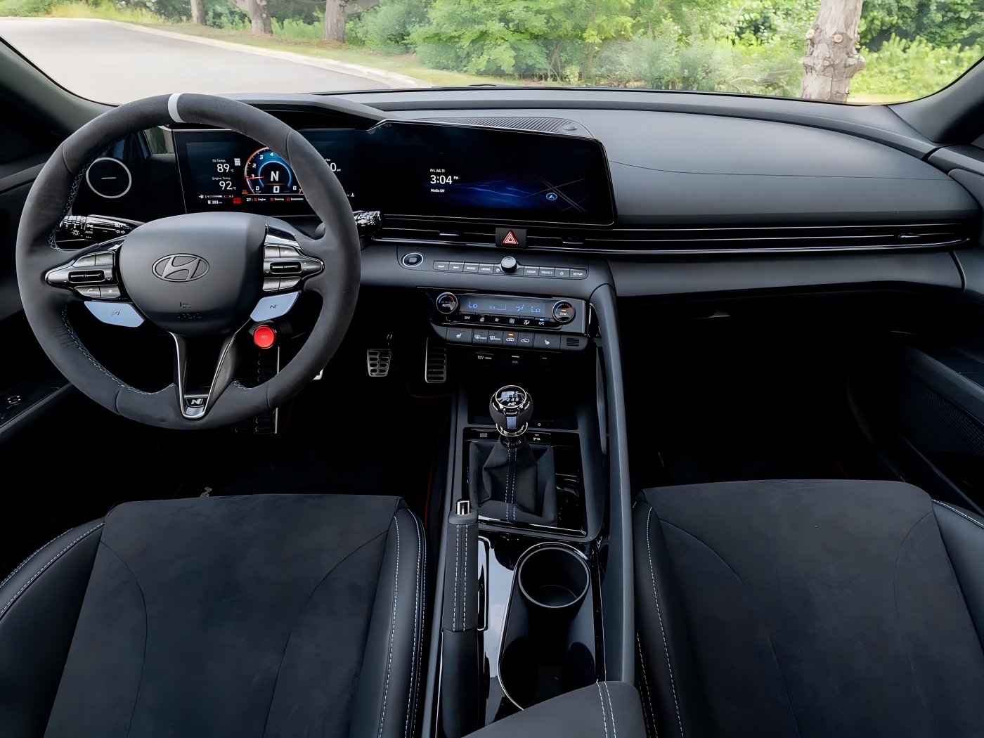 Во однос на ентериерот, целокупниот распоред на новиот автомобил не е многу различен од оној на Elantra N, но е опремен со управувач „N перформанси“ Алкантара со маркер за позиција од 12 часот. Во меѓувреме, предниот ред е опремен со сини безбедносни ремени, вратите на вратите се опремени со N Performance Metal Sill Shill, а автомобилот има и душеци за подот на перформансите, како и голем број колекции за внатрешни работи на Алкантара. На пример, рачната рачка за сопирачката за паркирање, рачката за промена на менувачот и потпирачот за потпирачи за потпирачи за рака се завиткани во Алкантара. Конечно, има лого „TCR верзија“ на светлата на рачката на вратата, кое е полно со емоционална привлечност.